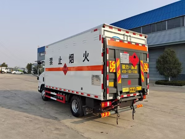 | 貨箱配置 | 廂體為雙層金屬骨架結(jié)構(gòu),外板采用冷軋鋼板,中間填充阻燃泡沫,內(nèi)飾為鋁板。底板為平板上鋪防靜電膠皮。廂內(nèi)兩側(cè)加裝固定貨物臥環(huán),門框帶防盜報警器,頂部帶煙霧報警器,廂體右側(cè)選裝側(cè)門,隨車配2個滅火器,危險標(biāo)志牌,防火帽,危險品三角頂燈。(選裝瓦楞板貨箱) (尾部可選裝液壓升降尾板) | ||