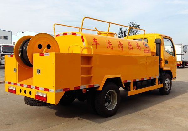 高壓清洗車也稱之為管道疏通車,通過高壓水流產(chǎn)生的強(qiáng)大壓力沖開被堵塞的管道。主要組成部分為罐體、高壓泵、液壓系統(tǒng)等。高壓清洗車主要用于清洗城市下水道、管道的沉積物、死角泥溝的疏通,也可用于清洗工業(yè)排液管道、壁面等,清洗公路、廣場(chǎng)地面。