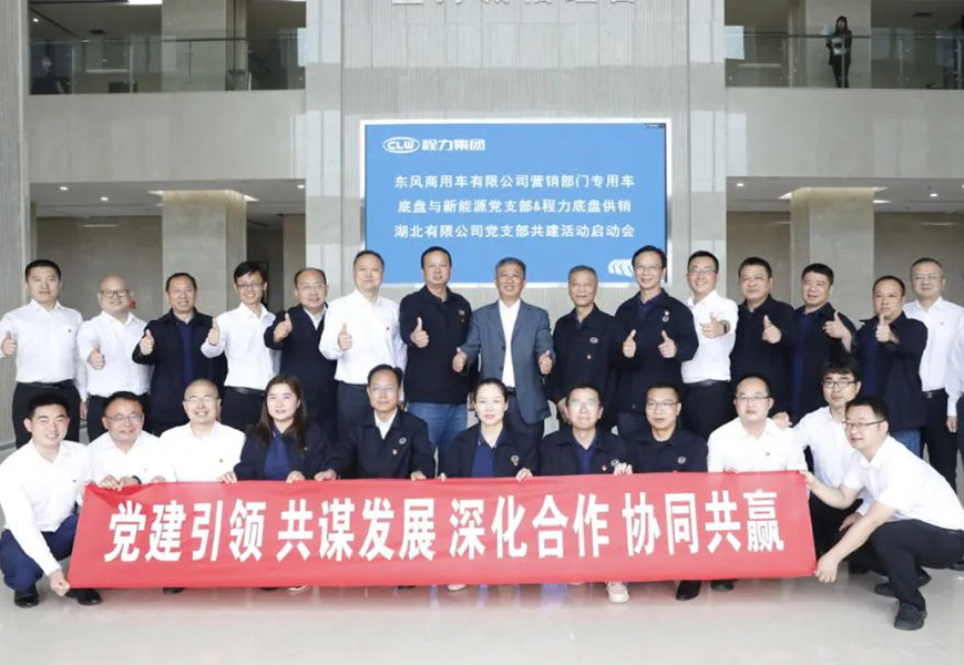5月末,程力集團黨委牽頭,東風商用車有限公司營銷部門專用車底盤與新能源黨支部攜手程力底盤供銷湖北有限公司黨支部,聯(lián)合開展“奮進新時代,共創(chuàng)向未來”共建活動。