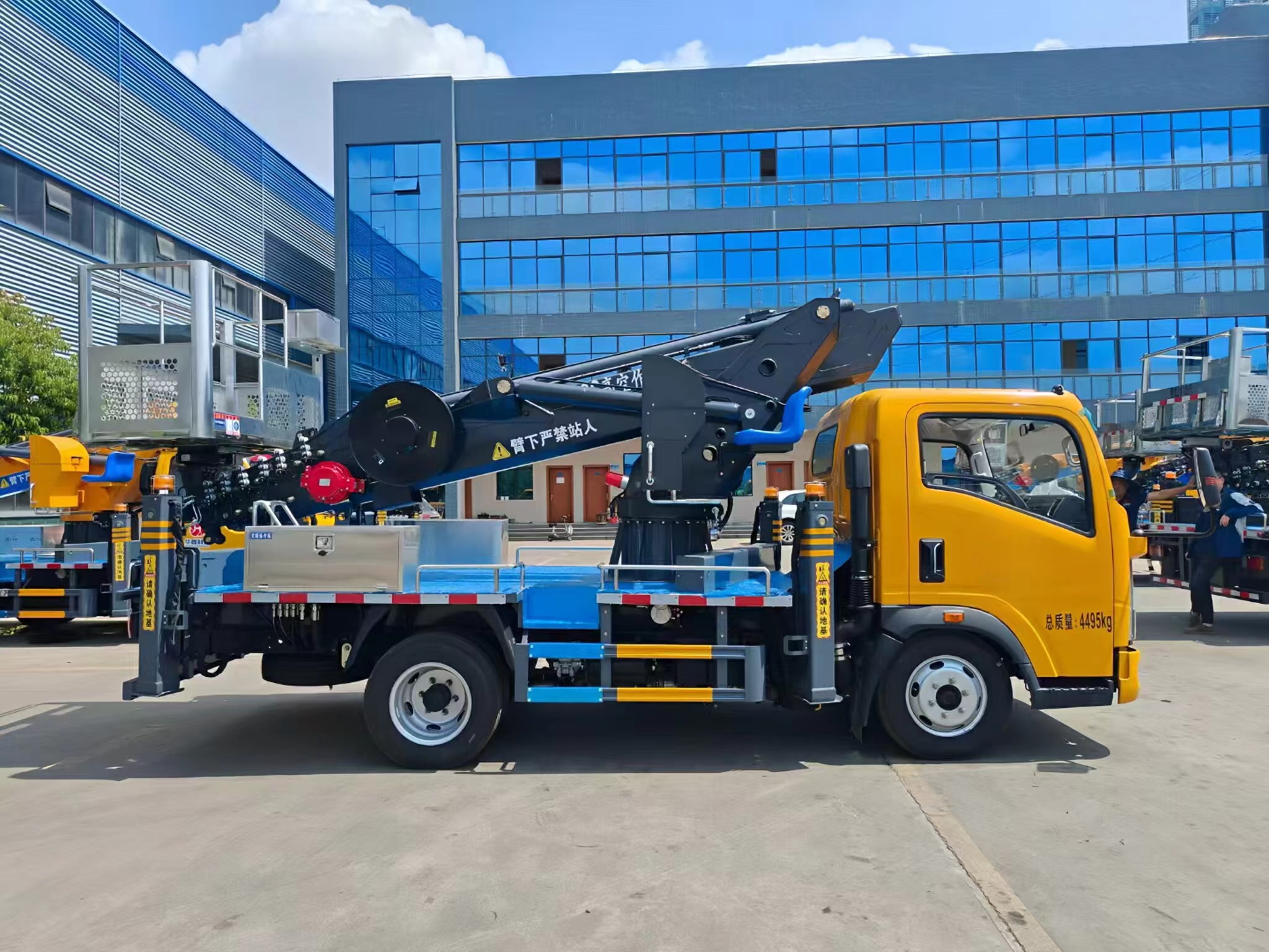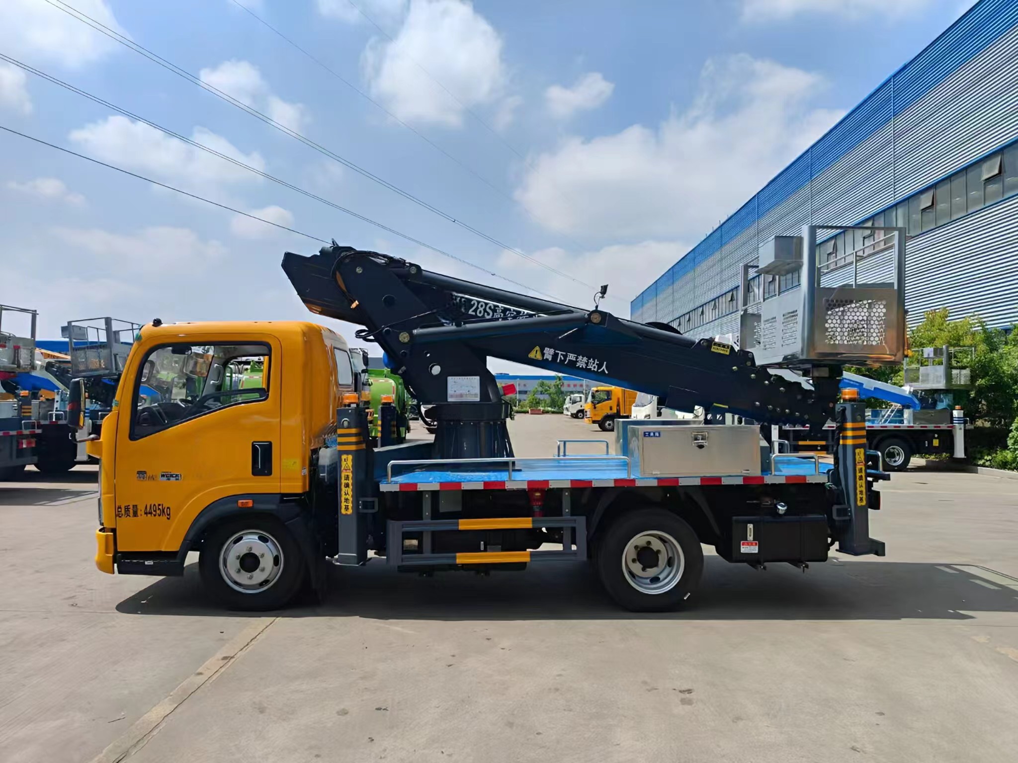 | 上裝配置 | 高空作業(yè)車基本功能安全配置: 最大作業(yè)高度23米,28米,31米 工作平臺: 高強度不銹鋼尺寸:1600*700*1000mm;360度連續(xù)回轉,電控操作,另配有手動應急操作; 控制系統(tǒng):CAN總線控制系統(tǒng),配有無線遙控器、實現(xiàn)無級調速, 調平系統(tǒng):靜液自動調平 臂架形式:★多邊形型工作臂,同步伸縮 支腿:★前V后H型/前V后V單獨可調(控制) | ||